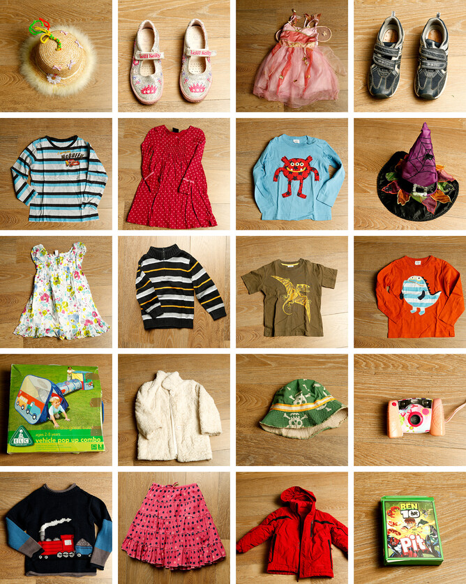 This obviously became its own chore – bags of clothes would sit for months before I summoned up the energy to go through them and photograph them. But this I did and now, nestled somewhere on assorted hard drives which house my professional photography, is a ton of photos of their clothes, their teddies and the rest of their toys. The photos aren’t artful – I didn’t have time for that. They are just a record. Incidentally, while I was typing that last sentence my husband came into my study and picked up a couple of badges I’d saved from a recent throw-out by the kids. ‘Why are you keeping this Team GB badge?’ he asked. ‘Why are you keeping the junior ranger badge?’ I don’t know, but perhaps they will become treasured possessions of our great-great-grandchildren. Although I suspect our kids will have chucked them out long before then. Anyway, back to the photos…